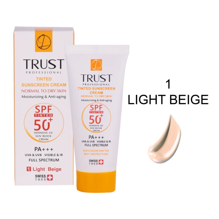 کرمهای ضدآفتاب رنگی تراست با SPF50+ از مرغوبترین و جدیدترین مواد اولیه موثره دارای حداکثر حفاظت دربرابر پرتوهای مضر خورشید ساخته شدهاند؛ این کرم با وجود بهرهمندی از بافتی سبک، دربرابر آسیبهای وارده توسط نور خورشید به خوبی از پوست محافظت و با مهار رادیکالهای آزاد از تخریب سلولهای پوستی جلوگیری میکند. همچنین با مصرف این محصول، بدون بسته شدن منافذ پوستی و ایجاد خلل در تنفس سلولهای پوستی، پوستتان آبرسانی میشود.