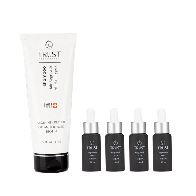 این کیت، مختص افرادیست که بارها از محصولات ضد ریزش موجود در بازار استفاده کردهاند اما نتیجه دلخواه خود را کسب نکردهاند! کیت تخصصی رویش مجدد تراست با استفاده از ترکیبات طبیعی، برای تاثیر گذاری بیشتر طراحی شده است و در مدت زمان 6 ماه، اثرات چشمگیری بر رشد مو خواهد داشت.