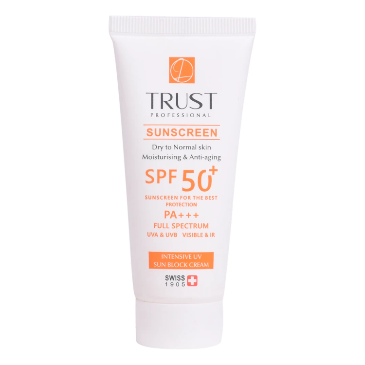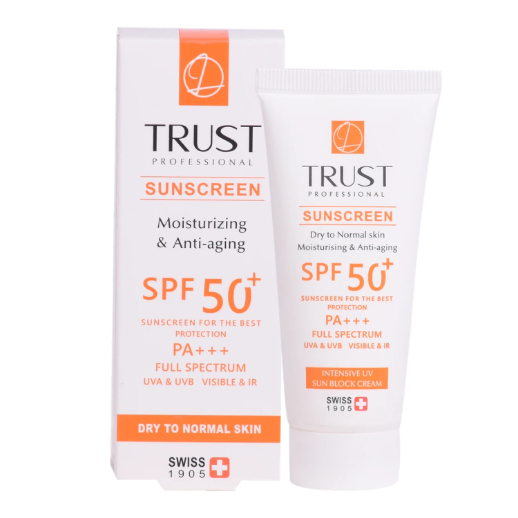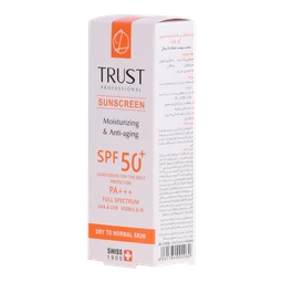 کرم ضدآفتاب و ضدپیری SPF +50 تراست، با استفاده از مرغوبترین و جدیدترین مواد اولیه همچون هیالورونیک اسید و کوآنزیم کیوتن از پوست شما دربرابر پرتوهای مضر آفتاب به طور کامل محافظت میکند. این کرم علاوه بر مهار رادیکالهای آزاد و محافظت از پوست دربرابر آلودگیهای محیطی، از تخریب سلولهای پوستی، بروز چینوچروک، پیری زودس و لکهای ناشی از آفتاب نیز جلوگیری میکند. این محصول بافتی سبک داشته و با قابلیت جذب سریع و آبرسانی قویِ پوست خشک و حفظ رطوبت آن، پس از مصرف منافذ پوستی را نبسته و هیچ خللی در روند تنفس سلولهای پوستی ایجاد نمیکند.