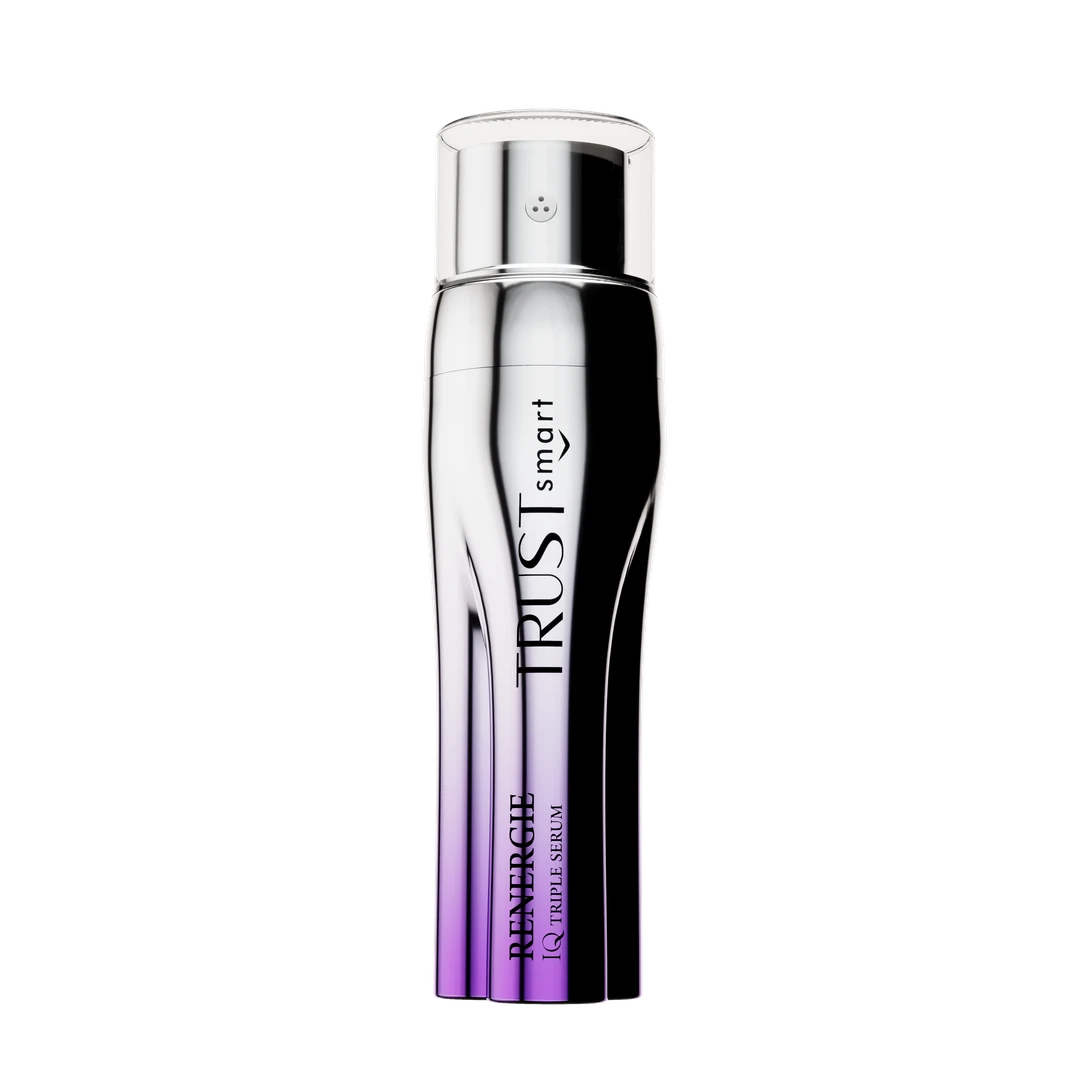 سرم سهگانه هوشمند تراست برای اولین بار به عنوان قویترین محصول حاوی سه نوع سرم روشنکننده، ضد چروک و جوانساز پوست در قالب یک محصول طراحی شده است. سرم روشنکننده حاوی ترکیبات فعال اصلی ویتامین C و نیاسینآمید است که به طور چشمگیری به رفع لکهای پوست و جلوگیری از تیرگی پوست ناشی از عوامل مختلف کمک میکند. این محصول با داشتن ترکیبات فعال فرولیکاسید و مزوکمپلکس آر ای در فرمولاسیون سرم جوانساز خود، توانایی بینظیری برای ساخت سلولهای جدید پوستی و بازسازی و جوانسازی پوست دارد. مزوکمپلکس مورد استفاده در فرمولاسیون این سرم، با داشتن انواع ترکیبات فعال پپتیدی، آمینواسیدها، هیالورونیکاسید، مواد معدنی و انواع ویتامینها، تاثیر منحصر به فردی در بازسازی و جوانسازی پوست دارد. کلاژن و هیالورونیکاسید مورد استفاده در فرمولاسیون سرم ضد چروک هم بعد از استفاده از سرم بر روی پوست تاثیر همافزایی با مزوکمپلکس و فرولیک در آبرسانی، رفع چین و چروکها و افزایش استحکام پوست دارد. بنابراین سرم سهگانه هوشمند تراست با داشتن سه نوع سرم با ترکیبات فعال آبرسان، افزایشدهنده استحکام پوست، جوانکننده و ضد چروک و روشن کننده پوست، به عنوان محصولی متفاوت و بینظیر به بازار معرفی گردید.